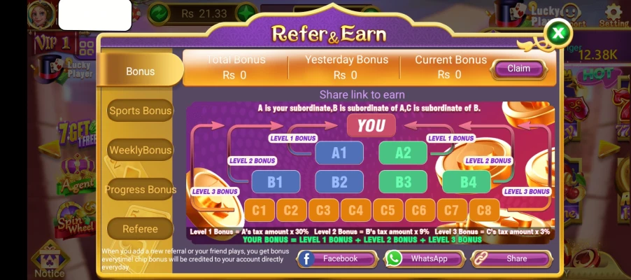 To enhance the gaming experience, Teen Patti Mela offers various bonuses and rewards: