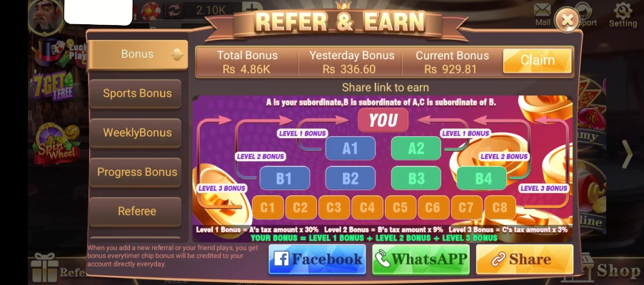 Referral Program: Invite friends to join the platform and earn commissions when they sign up and play.